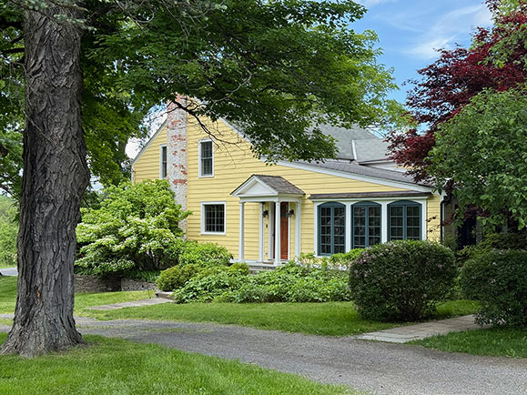 … Now the formal entrance to the home is from the grand tree-lined circular driveway to the side door, to a foyer, which opens to a large, beamed living room (with welcoming woodburning fireplace) bypassing the infrequently used front door and revealing an attractive classic curved stair to the second floor. On the other side of the stair, on the first floor, a bedroom or den and adjoining bathroom were installed, while on the second floor there are three traditional bedrooms and two bathrooms. The kitchen was updated to include cherrywood kitchen cabinets and adjacent light-filled dining room with stone floor was added. The ground floor was extensively enlarged to include a second handsome stair to the upstairs bedrooms/baths and a large primary bedroom suite with wood burning fireplace, separate walk-in closet and shelves, luxurious Jacuzzi-type bathtub, and French doors to a stone patio, adjacent to a screened porch. A few steps away from the main residence, a small post and beam barn was completely renovated to become a stylish vaulted-ceiling studio with full bathroom. Nearby is a huge, spectacular hillside post-and-beam barn originally used to store hay and grain on the upper floor and on the walk-out lower-level, stalls for horses and other animals. A corncrib and outhouse are remnants of these bygone times. Beautifully landscaped to include perennial native and showy flowers, dogwood and shad shrubs, the property encompasses hundred-year-old trees, grassy meadows, and an inviting curved Gunite pool. Set on a country road with other farms, this area is highly valued as one of the retreats for prosperous New York City families, especially on weekends during the summer months. The home is just down the road from the PS21 Center for Contemporary Performance and the Chatham Shaker Museum, 2.5 hours from New York City and Boston, half hour to Hudson, Albany, and an easy distance to the peaceful Catskill and Berkshire Mountains.