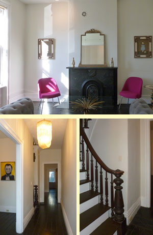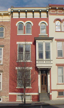 | 1880 HUDSON BRICK ROWHOUSE… Elegant open spaces on three floors, with original details including decorative faux marble mantles, high ceilings, wide board floors, and wonderful light. Side hall has curved stair that leads from the ground floor to the third floor where a generous roof deck overlooks the city and your private garden, lined with Arborvitae (see photos next page). The first floor designer kitchen (leading to the garden) has equisite marble countertops and upscale stainless appliances. Handsome oriel window on the second floor adds extra charm to this wonderful residence with up to five bedrooms. Or live and work in flexible space with a superb Warren Street presence. Two off-street parking spaces are accessed from the alley. Part of an extraordinary collection of 19th century brick rowhouses… SOLD | |||
