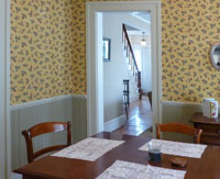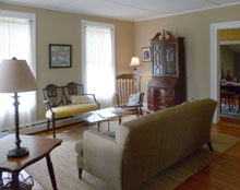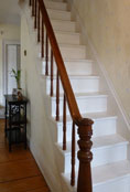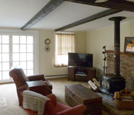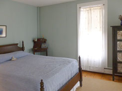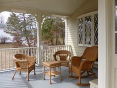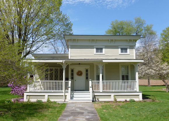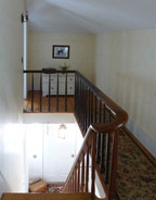 ITALIANATE COUNTRY COTTAGE… has large front porch with sitting area, original wood siding and roof brackets. Front door with handsome sidelights opens to attractive staircase and light filled living room with tall windows. The adjacent dining room has chair rail with wainscot and opens to the kitchen. Behind is an addition with family room with woodstove and glass doors to a stone patio. On the other side of the entrance is a bedroom and a full bath with space for laundry. The graceful stair leads up to a landing (see next page). Set on one and a half acres with red barn and adorable playhouse and backed by farm fields, in a quiet settlement, just minutes to Chatham or Valatie/Kinderhook villages, 15 minutes to Hudson, half hour to the Capital District, and under two and a half hours to Boston or NYC… $245,000 |