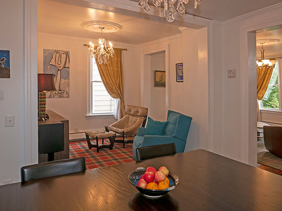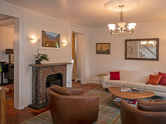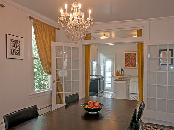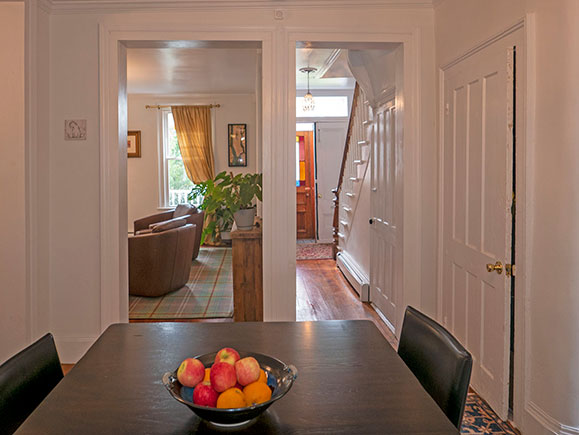 Enter through 19th century double doors to the original staircase and hall. Many windows provide abundant light to feature original wide board floors, handsome moldings and stone mantel. Spacious living areas flow from one to another through French doors. An alcove off the living room can be used for a study or library. The first-floor bedroom, currently used for an office, has the laundry and a full ensuite bathroom with a classic claw foot tub. The bright kitchen, with a classic black and white tiled floor, has a separate pantry and a door leading to the back staircase or onto the back deck. Upstairs are three more spacious bedrooms, all with large and recently redone private bathrooms. There’s a garden in the back and alley access for off street parking. Perfect for full-time or part-time living in Hudson, recently it was used as a successful short- and long-term rental. Walk to the Farmers Market, restaurants, cafes, shops, galleries, the Hudson River Waterfront Park, and Amtrak. Only a two-hour drive to NYC.