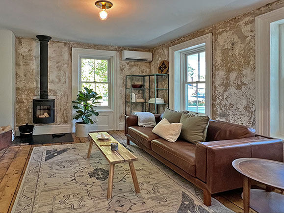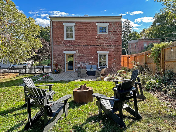 In the heart of the historic village of Athens, on the Hudson River, this 19th century brick Italianate style home, with handsome solid cornice brackets, has been exquisitely renovated, retaining original charm but with modern energy improvements. … A classic front porch and original double front doors open into the house with high ceilings, original wide board floors and French doors to the living room with beautiful plaster walls and a stunning, modern Morso wood stove. The light-filled open kitchen and dining area has ample space for entertaining and food prep with all-new appliances including an induction stove. Upstairs are two bedrooms with multiple large closets, unusual for a 19th century house. Two full bathrooms are on the second floor: One is ensuite to the primary bedroom with a fabulous claw foot tub with vintage brass fixtures and a convenient laundry with new appliances. The second bath, in the hall, has a striking glass walk-in shower. Downstairs, the door from the kitchen opens to a wood deck, perfect for outdoor entertaining. Or relax in the wonderful Finlandia sauna and convenient outdoor shower. On a large double lot, with mature trees and lovely perennial gardens, there is off-street parking for two cars, an EV charger, and around the corner in the back, a separate garden tool shed that could be converted to a nice work or studio space. Among the many house upgrades are Anderson windows, energy efficient heat pumps for heating and cooling throughout the house and a whole-house dehumidifier. Just move in and experience the upstate lifestyle on the Hudson River. Walk to Athens restaurants, cafes, wine store, and waterfront park. It is only minutes to the vibrant communities of Catskill and Hudson with shops, farmers market, galleries, theatre, and more. The adjacent Catskill Mountains provide summer hiking and winter skiing. NYC is two hours away by car or via Amtrak in Hudson.